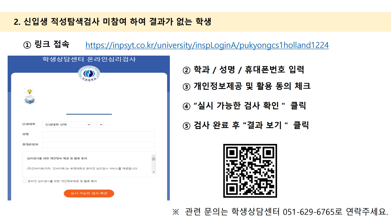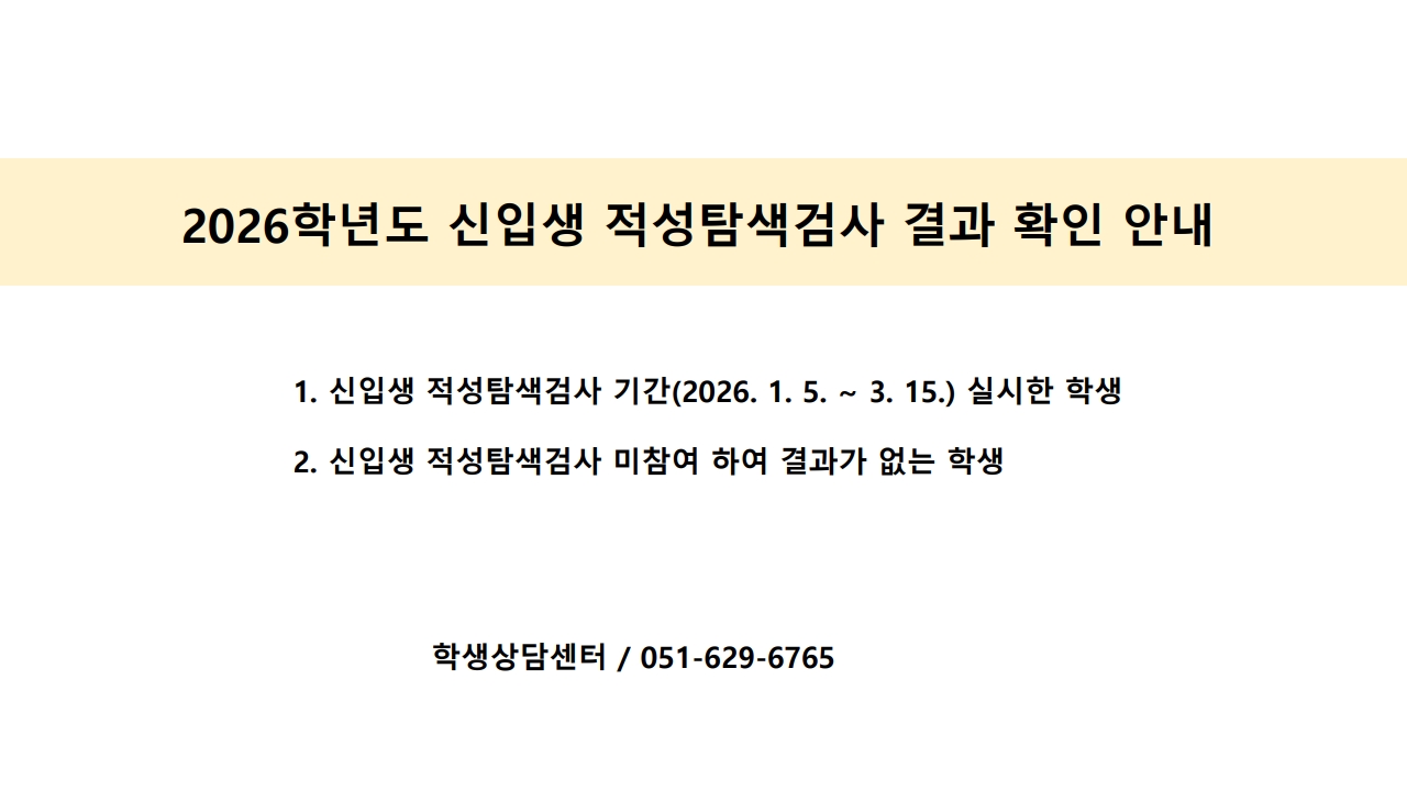 2026학년도 신입생 적성탐색검사 결과 확인 안내