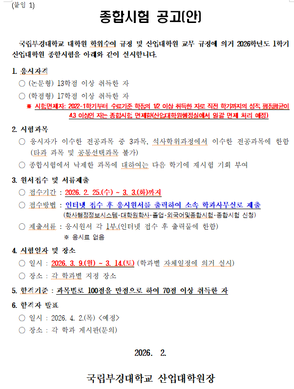 | [산업대학원] 2026-1학기 산업대학원 종합시험 시행 계획 알림 | |||