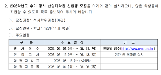 | [산업대학원] 2026학년도 후기 정시 산업대학원 신입생 모집 안내 | |||