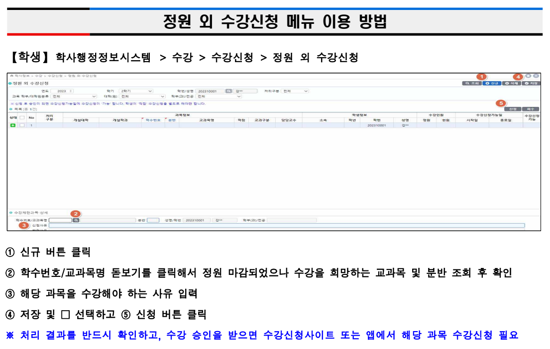 신입생 1학년 수강 교과목 및 수강신청 안내