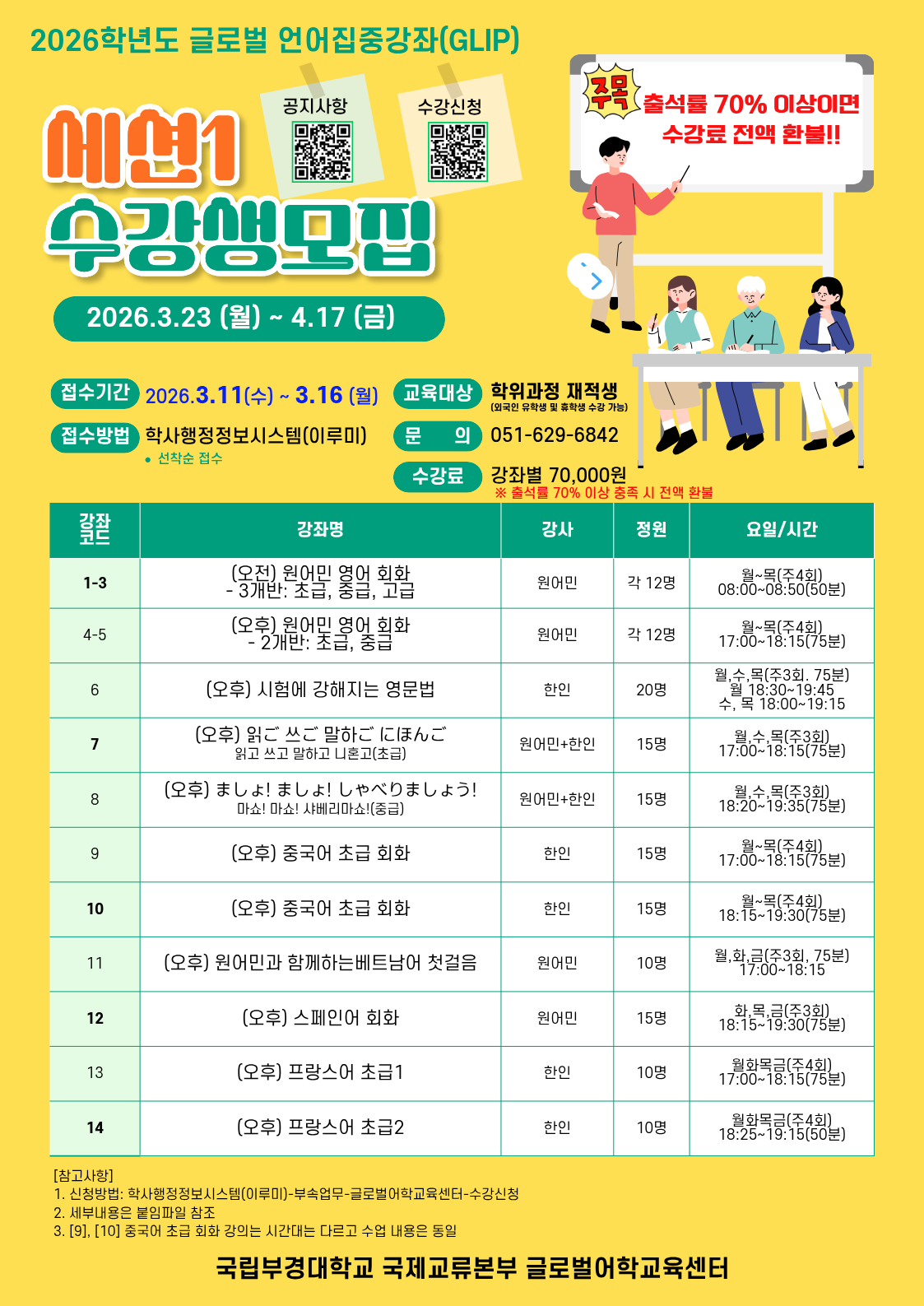 2026학년도 글로벌 언어집중강좌(GLIP) 세션1 운영 안내